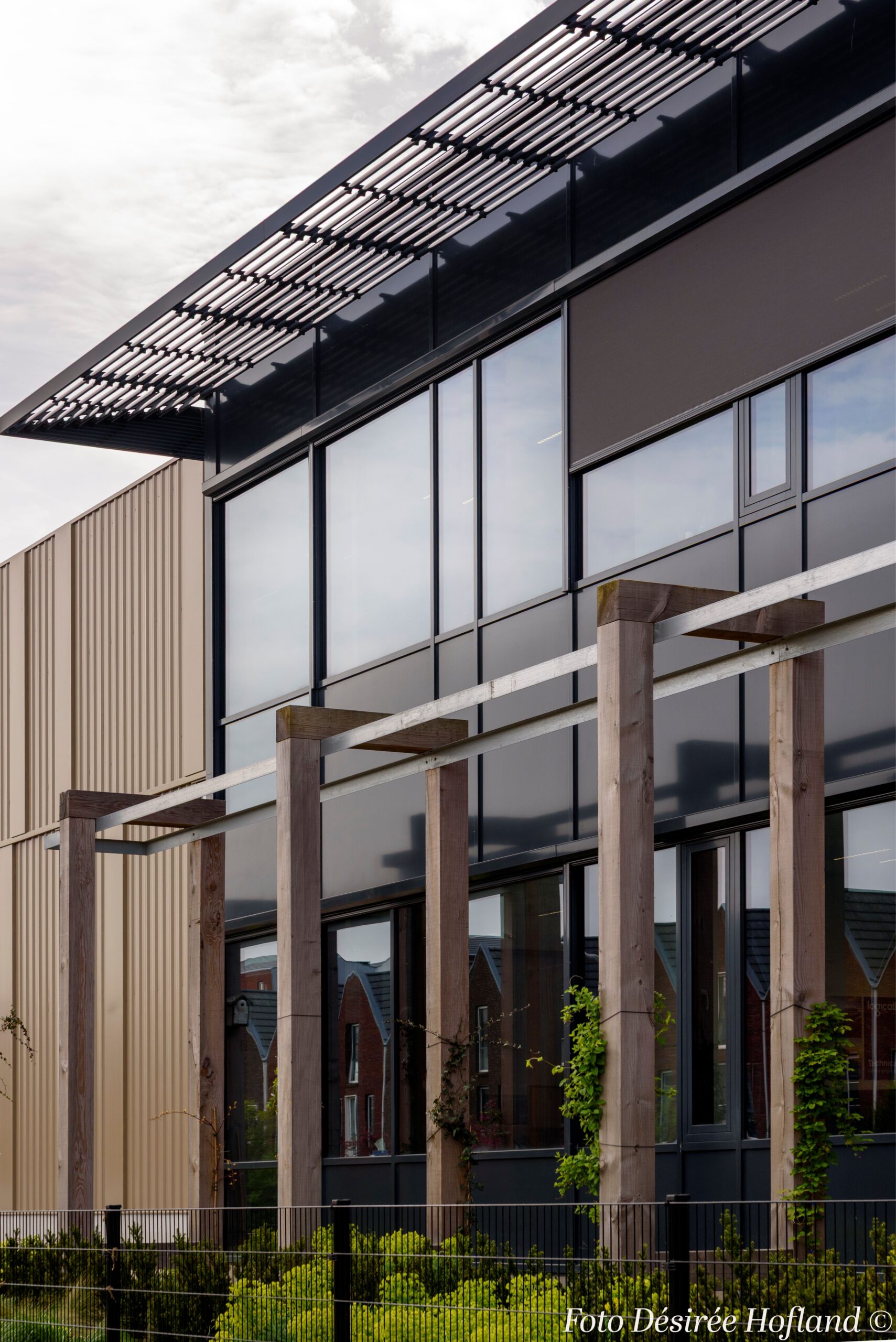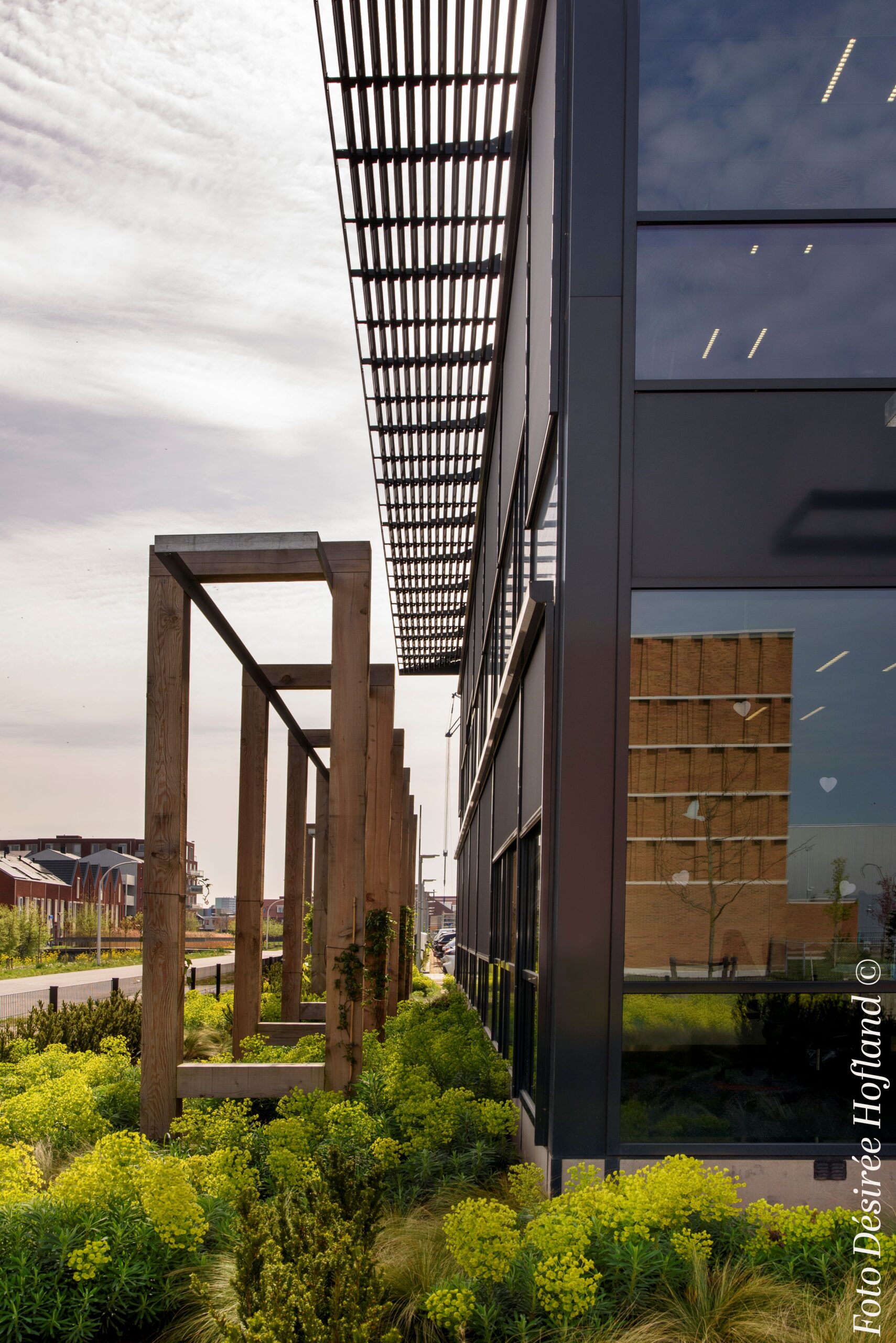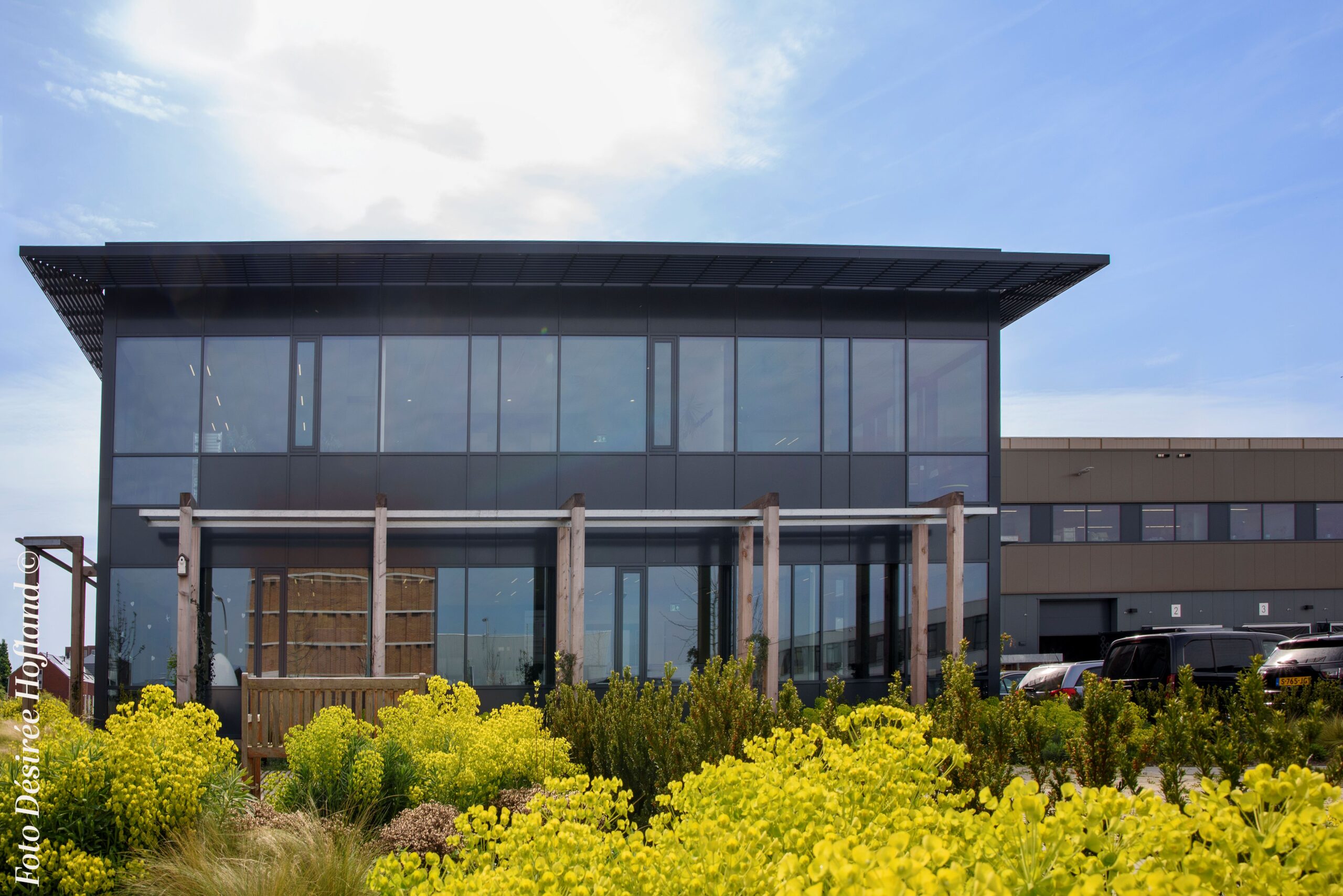Het uitgangspunt was een harmonieus ontwerp. Het gebouw, ontworpen door OPL Architecten, integreert naadloos in de omgeving van het bedrijventerrein Harnaschpolder in Midden-Delftland. Met zijn gevarieerde bouwhoogtes en rustige kleurenschema creëert het een vloeiende overgang tussen verschillende functies. Een weelderige bedrijfstuin en een groene overgangszone met een fraaie pergola versterken de natuurlijke uitstraling, terwijl ze tegelijkertijd het zicht op het truckcourt minimaliseren voor omwonenden.